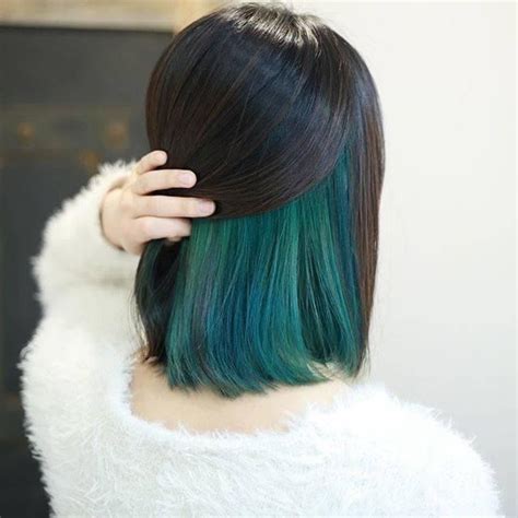 They are also easy to spot if you go for a wavy hairstyle. This part of the hair would remain the same color the client started with. It absolutely creates a true hair symphony. Bright cherry red on black hair Whether you want to go for a dark red or just add subtle auburn highlights, this is the best time to do it. Stunning blue underneath colored hair ideas. The beauty of black is its ability to be a statement color for women with a vast array of skin tones. Hair dye colors ombre hair color hair color for black hair brown hair colors hair colors for winter dyed black hair dark hair subtle balayage brunette brown hair balayage A pastel shade blends seamlessly with lighter hair while a more saturated color is a better fit for dark hair. This instagrammer coloured the top section of her hair with a fiery red hue while leaving the underneath section a deep dark hue. And whilst some products are suitable direct replacements, other removal products are better used for when you are preparing your hair to receive a new color. What is peekaboo hair color? These are applied underneath the top layer of your hair, and they are not as easy to spot once you wear your hair down.